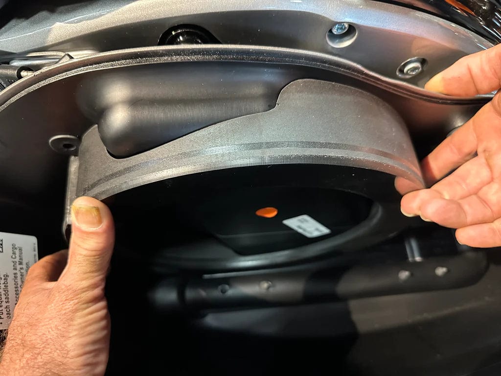 Fitment will also vary by bag manufacture. Using a Quality bag or stock bag will achieve the best results. The inside diameter may have to be opened slightly as there are different speaker manufactures on the market. All new designs beginning 12/1/21 and material come with Speaker and ring mounting hardware. Threaded Inserts for speakers ( 8 ) 10-24 Stainless steel hardware, 16 stainless steel outer ring hardware. Drill bit and tool to put in inserts are optional and can be found in the hardware section. Panel bond not included.
