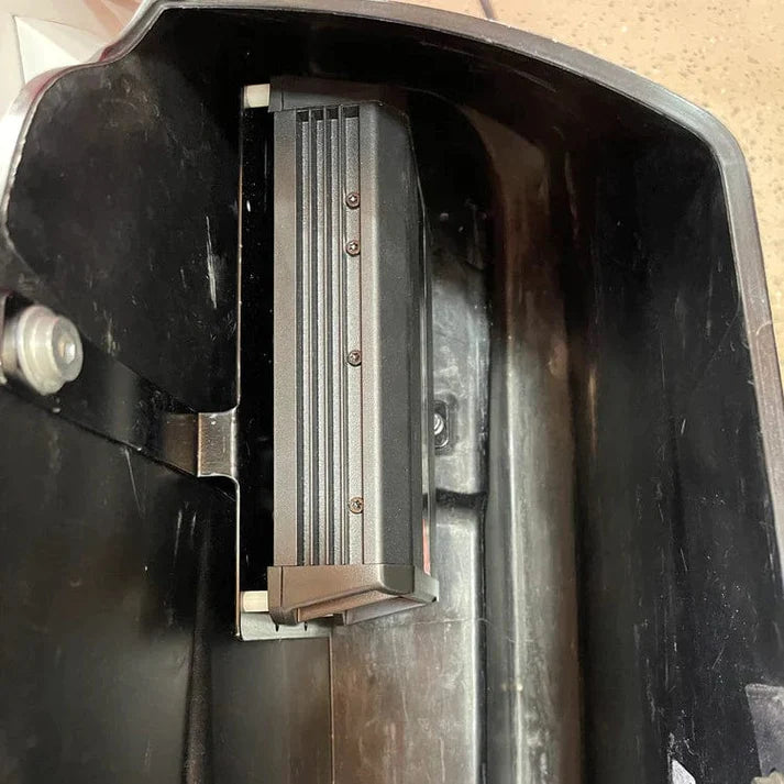 Custom fabricated Amplifier mounting plates for the Indian Motorcycle saddlebags.
