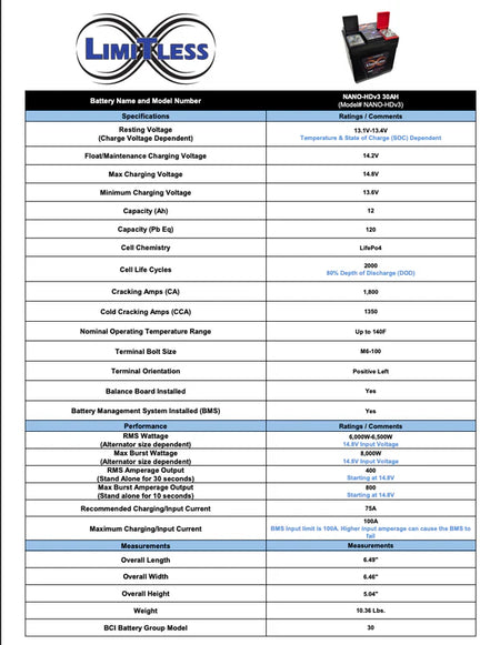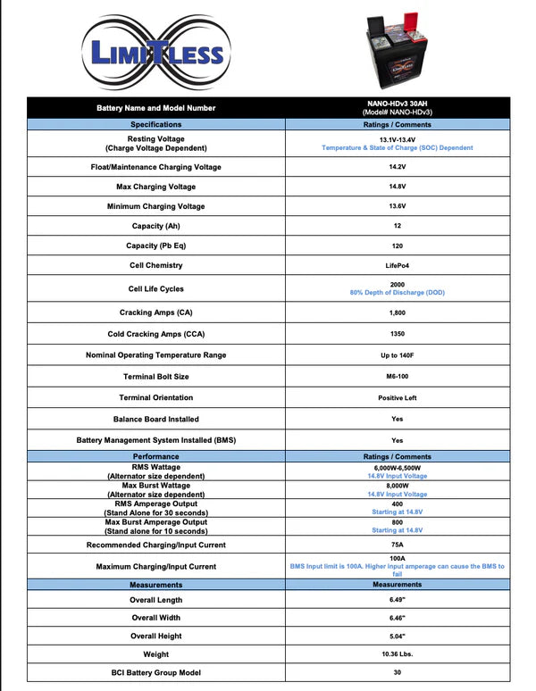 POWER: Supports 5,500-6,000 Watts BMS Protected Motorcycle & Powersports only (No vehicles with an alternator over 150 amps)